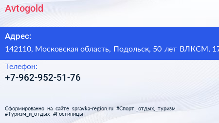 Avtogold по адресу 142110, Московская область, Подольск, 50 лет ВЛКСМ, 17 в дальнейшем Организация, размещена в следующих категориях: