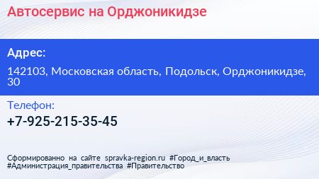 Автосервис на Орджоникидзе по адресу 142103, Московская область, Подольск, Орджоникидзе, 30 в дальнейшем Организация, размещена в следующих категориях: