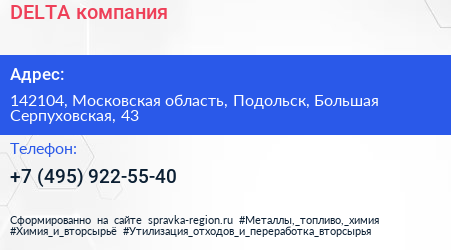 DELTA, компания по адресу 142104, Московская область, Подольск, Большая Серпуховская, 43 в дальнейшем Организация, размещена в следующих категориях: