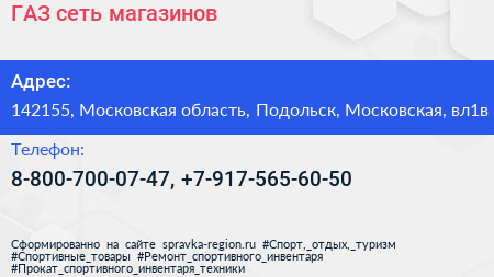 ГАЗ, сеть магазинов по адресу 142155, Московская область, Подольск, Московская, вл1в в дальнейшем Организация, размещена в следующих категориях: