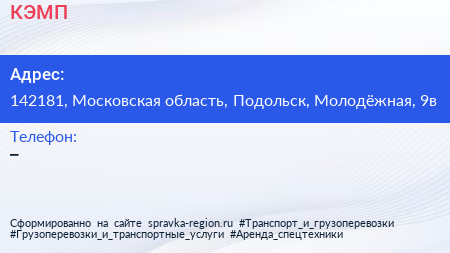 КЭМП по адресу 142181, Московская область, Подольск, Молодёжная, 9в в дальнейшем Организация, размещена в следующих категориях: