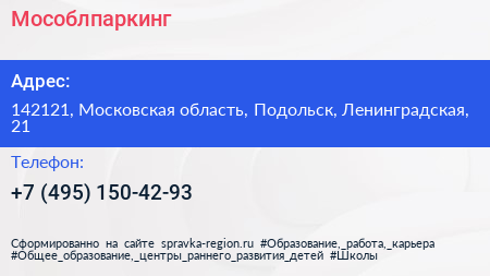 Мособлпаркинг по адресу 142121, Московская область, Подольск, Ленинградская, 21 в дальнейшем Организация, размещена в следующих категориях: