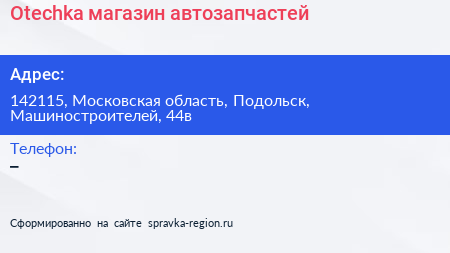 Otechka, магазин автозапчастей по адресу 142115, Московская область, Подольск, Машиностроителей, 44в в дальнейшем Организация, размещена в следующих категориях: