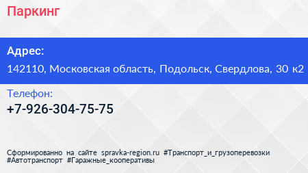 Паркинг по адресу 142110, Московская область, Подольск, Свердлова, 30 к2 в дальнейшем Организация, размещена в следующих категориях: