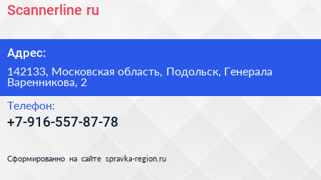 Scannerline.ru по адресу 142133, Московская область, Подольск, Генерала Варенникова, 2 в дальнейшем Организация, размещена в следующих категориях: