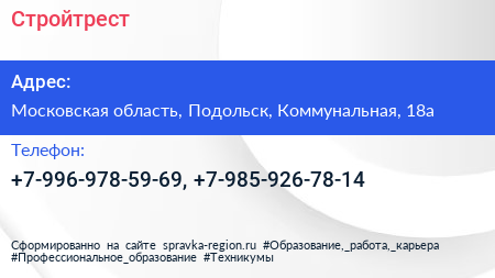 Стройтрест по адресу Московская область, Подольск, Коммунальная, 18а в дальнейшем Организация, размещена в следующих категориях: