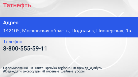 Татнефть по адресу 142105, Московская область, Подольск, Пионерская, 1в в дальнейшем Организация, размещена в следующих категориях: