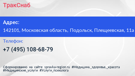 ТракСнаб по адресу 142101, Московская область, Подольск, Плещеевская, 11а в дальнейшем Организация, размещена в следующих категориях: