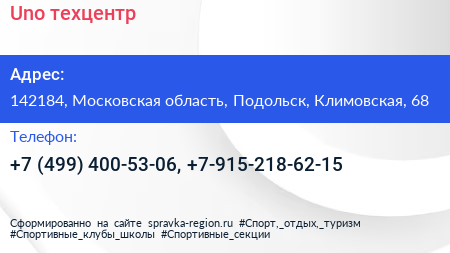 Uno, техцентр по адресу 142184, Московская область, Подольск, Климовская, 68 в дальнейшем Организация, размещена в следующих категориях: