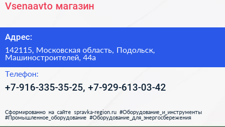 Vsenaavto, магазин по адресу 142115, Московская область, Подольск, Машиностроителей, 44а в дальнейшем Организация, размещена в следующих категориях: