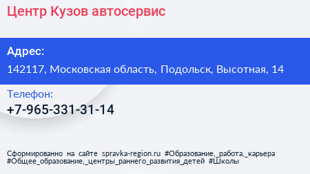 Центр-Кузов, автосервис по адресу 142117, Московская область, Подольск, Высотная, 14 в дальнейшем Организация, размещена в следующих категориях: