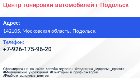 Центр тонировки автомобилей, г. Подольск по адресу 142105, Московская область, Подольск, в дальнейшем Организация, размещена в следующих категориях: