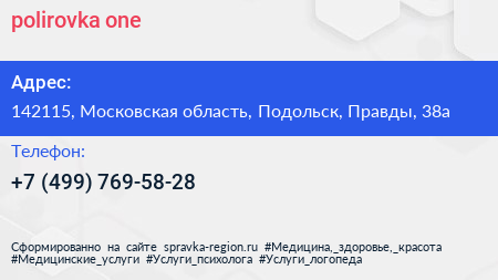 polirovka.one по адресу 142115, Московская область, Подольск, Правды, 38а в дальнейшем Организация, размещена в следующих категориях: