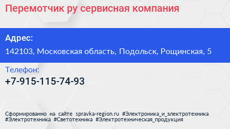 Перемотчик.ру, сервисная компания по адресу 142103, Московская область, Подольск, Рощинская, 5 в дальнейшем Организация, размещена в следующих категориях: