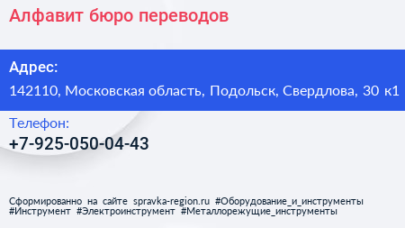 Алфавит, бюро переводов по адресу 142110, Московская область, Подольск, Свердлова, 30 к1 в дальнейшем Организация, размещена в следующих категориях: