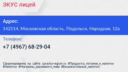 ЭКУС, лицей по адресу 142114, Московская область, Подольск, Народная, 12а в дальнейшем Организация, размещена в следующих категориях: