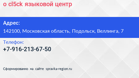 o`cl5ck, языковой центр по адресу 142100, Московская область, Подольск, Веллинга, 7 в дальнейшем Организация, размещена в следующих категориях:
