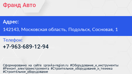 Франд-Авто по адресу 142143, Московская область, Подольск, Сосновая, 1 в дальнейшем Организация, размещена в следующих категориях: