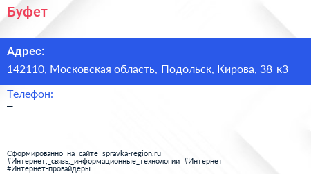 Буфет по адресу 142110, Московская область, Подольск, Кирова, 38 к3 в дальнейшем Организация, размещена в следующих категориях: