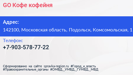 GO!Кофе, кофейня по адресу 142100, Московская область, Подольск, Комсомольская, 1 в дальнейшем Организация, размещена в следующих категориях: