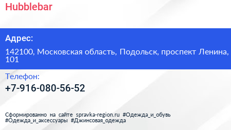 Hubblebar по адресу 142100, Московская область, Подольск, проспект Ленина, 101 в дальнейшем Организация, размещена в следующих категориях: