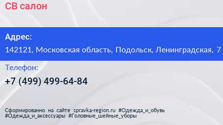 СВ салон по адресу 142121, Московская область, Подольск, Ленинградская, 7 в дальнейшем Организация, размещена в следующих категориях: