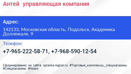 Антей+, управляющая компания по адресу 142133, Московская область, Подольск, Академика Доллежаля, 9 в дальнейшем Организация, размещена в следующих категориях: