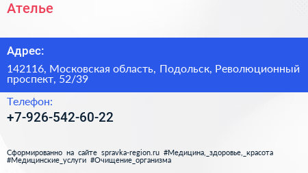 Ателье по адресу 142116, Московская область, Подольск, Революционный проспект, 52/39 в дальнейшем Организация, размещена в следующих категориях: