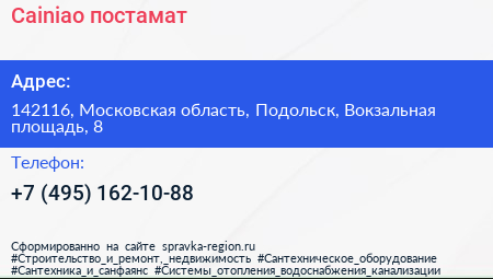 Cainiao, постамат по адресу 142116, Московская область, Подольск, Вокзальная площадь, 8 в дальнейшем Организация, размещена в следующих категориях:
