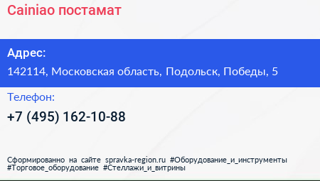 Cainiao, постамат по адресу 142114, Московская область, Подольск, Победы, 5 в дальнейшем Организация, размещена в следующих категориях: