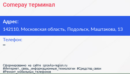 Comepay, терминал по адресу 142110, Московская область, Подольск, Маштакова, 13 в дальнейшем Организация, размещена в следующих категориях: