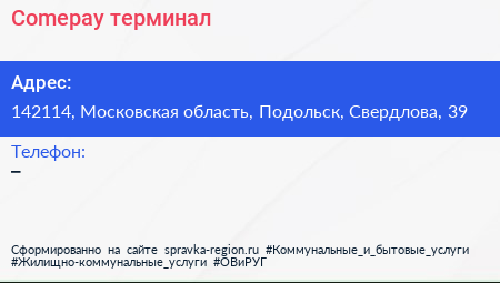 Comepay, терминал по адресу 142114, Московская область, Подольск, Свердлова, 39 в дальнейшем Организация, размещена в следующих категориях:
