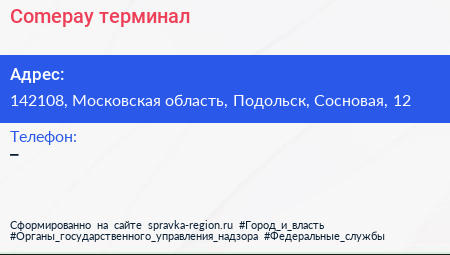 Comepay, терминал по адресу 142108, Московская область, Подольск, Сосновая, 12 в дальнейшем Организация, размещена в следующих категориях: