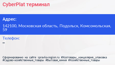 CyberPlat, терминал по адресу 142100, Московская область, Подольск, Комсомольская, 59 в дальнейшем Организация, размещена в следующих категориях: