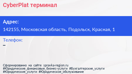 CyberPlat, терминал по адресу 142155, Московская область, Подольск, Красная, 1 в дальнейшем Организация, размещена в следующих категориях: