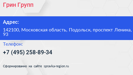 Грин Групп по адресу 142100, Московская область, Подольск, проспект Ленина, 93 в дальнейшем Организация, размещена в следующих категориях: