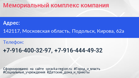 Мемориальный комплекс, компания по адресу 142117, Московская область, Подольск, Кирова, 62а в дальнейшем Организация, размещена в следующих категориях: