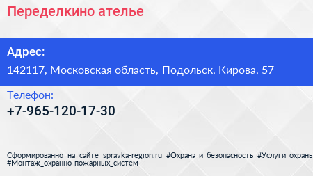 Переделкино, ателье по адресу 142117, Московская область, Подольск, Кирова, 57 в дальнейшем Организация, размещена в следующих категориях: