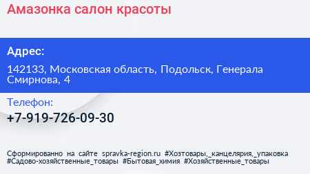 Амазонка, салон красоты по адресу 142133, Московская область, Подольск, Генерала Смирнова, 4 в дальнейшем Организация, размещена в следующих категориях:
