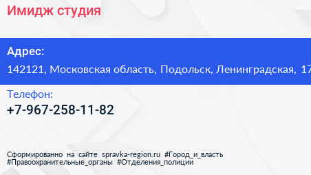 Имидж, студия по адресу 142121, Московская область, Подольск, Ленинградская, 17 в дальнейшем Организация, размещена в следующих категориях: