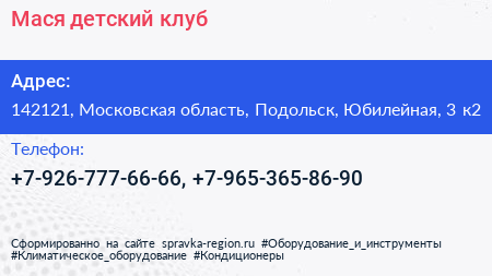 Мася, детский клуб по адресу 142121, Московская область, Подольск, Юбилейная, 3 к2 в дальнейшем Организация, размещена в следующих категориях: