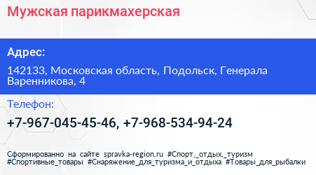 Мужская парикмахерская по адресу 142133, Московская область, Подольск, Генерала Варенникова, 4 в дальнейшем Организация, размещена в следующих категориях: