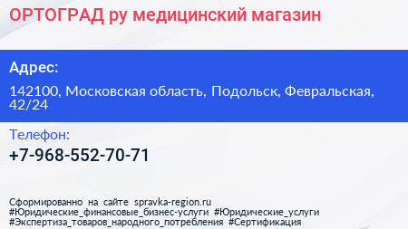 ОРТОГРАД.ру, медицинский магазин по адресу 142100, Московская область, Подольск, Февральская, 42/24 в дальнейшем Организация, размещена в следующих категориях: