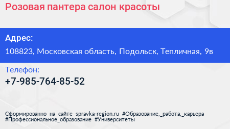 Розовая пантера, салон красоты по адресу 108823, Московская область, Подольск, Тепличная, 9в в дальнейшем Организация, размещена в следующих категориях: