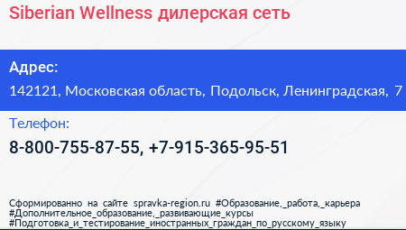 Siberian Wellness, дилерская сеть по адресу 142121, Московская область, Подольск, Ленинградская, 7 в дальнейшем Организация, размещена в следующих категориях: