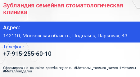 Зубландия, семейная стоматологическая клиника по адресу 142110, Московская область, Подольск, Парковая, 43 в дальнейшем Организация, размещена в следующих категориях: