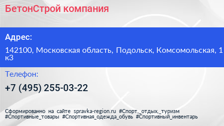 БетонСтрой, компания по адресу 142100, Московская область, Подольск, Комсомольская, 1 к3 в дальнейшем Организация, размещена в следующих категориях: