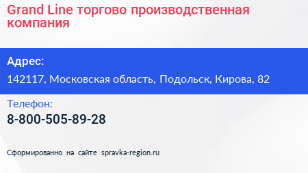 Grand Line, торгово-производственная компания по адресу 142117, Московская область, Подольск, Кирова, 82 в дальнейшем Организация, размещена в следующих категориях: