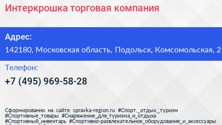 Интеркрошка, торговая компания по адресу 142180, Московская область, Подольск, Комсомольская, 2 в дальнейшем Организация, размещена в следующих категориях: