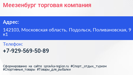 Меезенбург, торговая компания по адресу 142103, Московская область, Подольск, Поливановская, 9 к1 в дальнейшем Организация, размещена в следующих категориях: